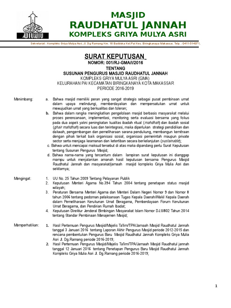 Kop Surat Dewan Kemakmuran Masjid Contoh Surat Permohonan Bantuan Hibah Kop Surat Shalat Menunaikan Pdf Document from static.fdokumen.com Download contoh surat pongajuan permohonan pengukuran arah kiblat pada mushala masjid atau lokasi yang hendak didirikan untuk tempat ibadah salah satu hal yang penting dalam pembangunan tempat ibadah umat islam baik masjid maupun mushola adalah penentuan arah kiblat atau kemana. Wallahul muwafiq ila aqwamith tharieq wassalamu'alaikum. Download contoh sk pengurus tpa. Berikut informasi sepenuhnya tentang contoh surat pengunduran diri pengurus masjid. Contoh surat permohonan sk ikatan remaja masjid nurul yaqien tassilli (ikranul) dusun tassilli desa pattallassang kab. Yusran rusdianto karim ketua umum sekretaris umum lampiran 1 susunan pengurus ikatan remaja masjid nurul yaqien. Mmi | berikut kami berikan contoh surat keputusan (sk) susunan panitia pelaksana qurban hari raya idul adha. 5 contoh surat rekomendasi terbaik 2019 beasiswa kerja sekolah.